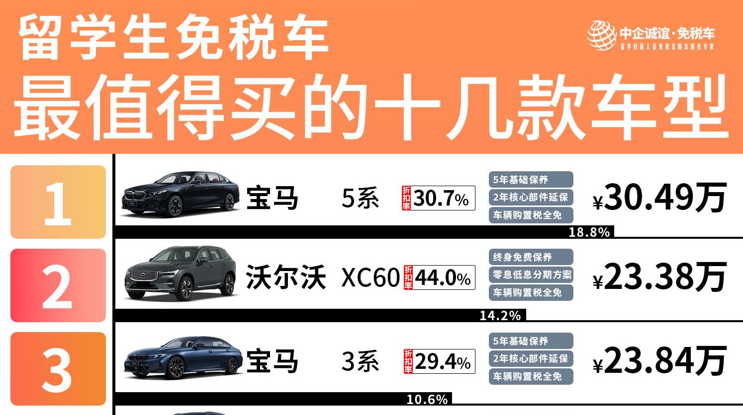 中企誠誼給大家盤點了2025留學生免稅車選購最多的車型——寶馬/沃爾沃/奧迪/奔馳/大眾/林肯等諸多品牌全涵蓋